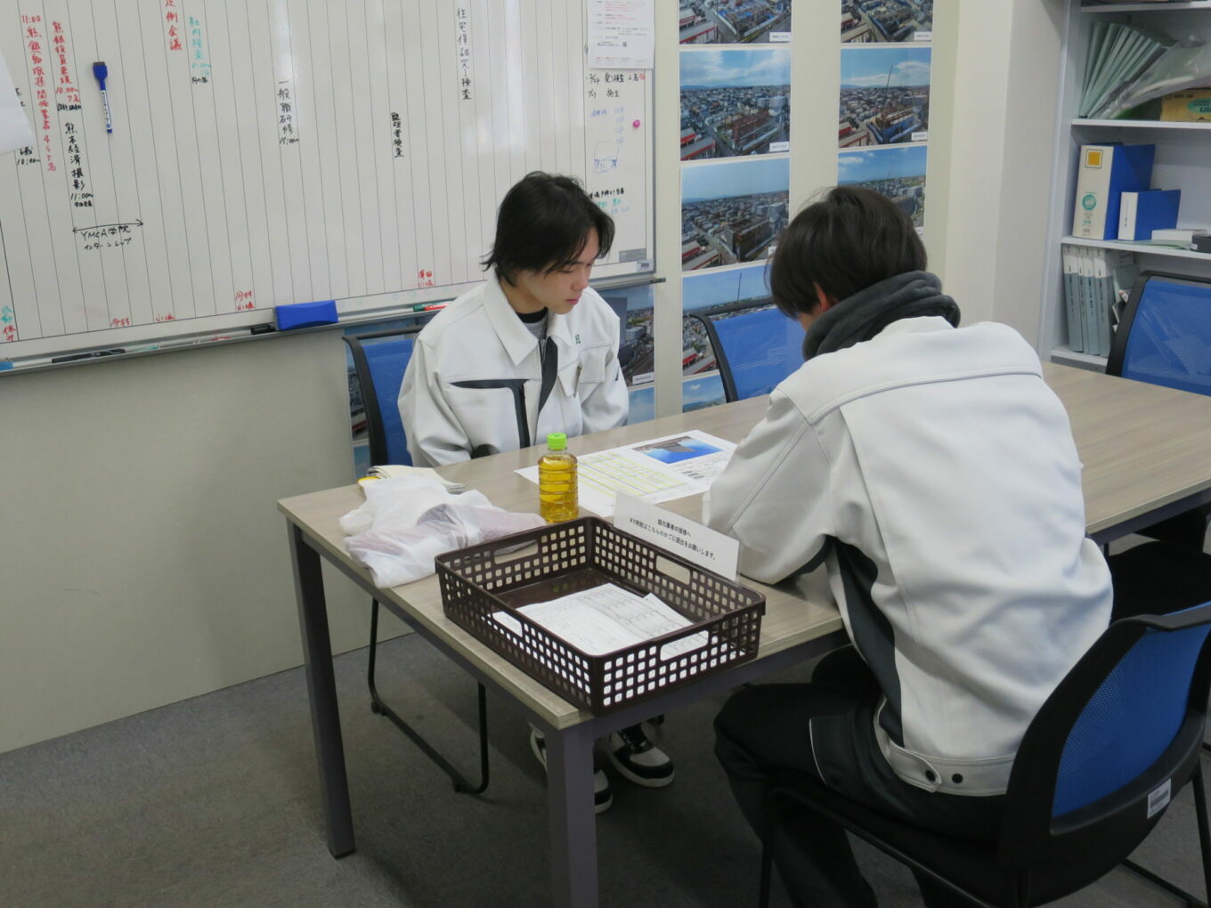 初日の午前中は本社にて、会社の概要や業務内容についての説明を受けた後、『安全・現場に関する動画』を視聴してもらいました