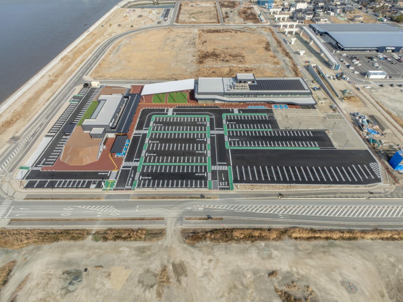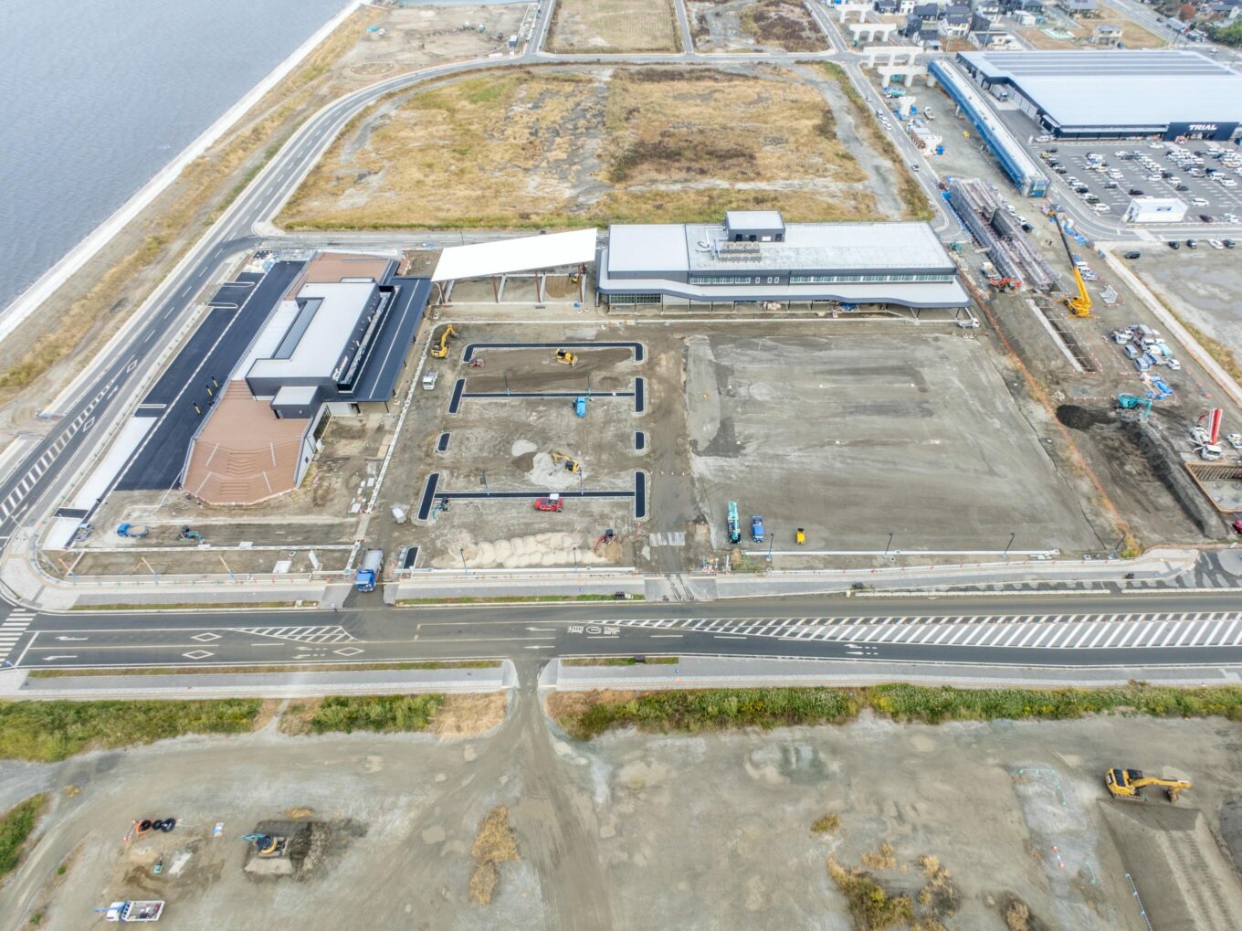 | 構造規模 | 道の駅:鉄骨造 2階建 延べ床面積2237.37㎡ 保育・福祉・子育て支援施設:鉄骨造 2階建 延べ床面積3922.94㎡ 大屋根広場:鉄骨造 1階建 延べ床面積476.69㎡ |
